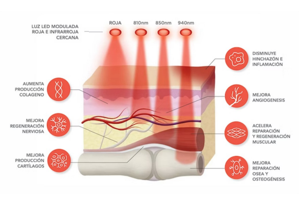 En términos fisiológicos, la PBM favorece la oxigenación y la perfusión tisular, reduce mediadores proinflamatorios, estimula procesos de regeneración y disminuye la sensación de dolor. Se ha aplicado con éxito en diferentes áreas de la medicina y la rehabilitación, como la cicatrización de heridas, la regeneración nerviosa, el tratamiento del dolor músculo-esquelético, el linfedema y las disfunciones microcirculatorias.